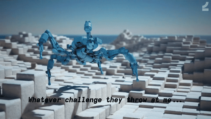 Em vez disso, nosso agente — você pode pensar nele como o jogador da IA — observa seu corpo e o mundo ao seu redor; e decide como mover as pernas nos próximos quadros. Isso significa que, se o agente colidir, for atingido ou gerar alguma força por si só, ele pode se adaptar imediatamente a cada situação específica. Se você tropeçar em uma pedra ou for atingido por uma bola de neve, fará algo único a cada vez — porque nenhuma bola de neve ou pedra é igual à outra.